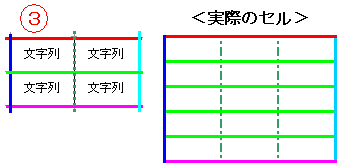 左の の≪罫線≫に対して、右が実際のセルが変更できる場所を