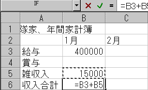まずセル"B2"をクリック、1月と入力します。