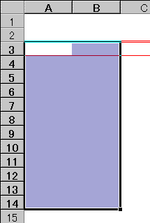 最初は下【図GS2-1】の様に、セル"A3"〜"F3"までを範囲指定します。