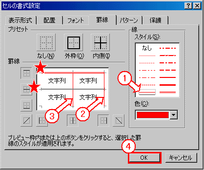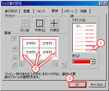 次に、下【図GS2−2】の 〜 の個所を順番にマウスでクリックしていきます。